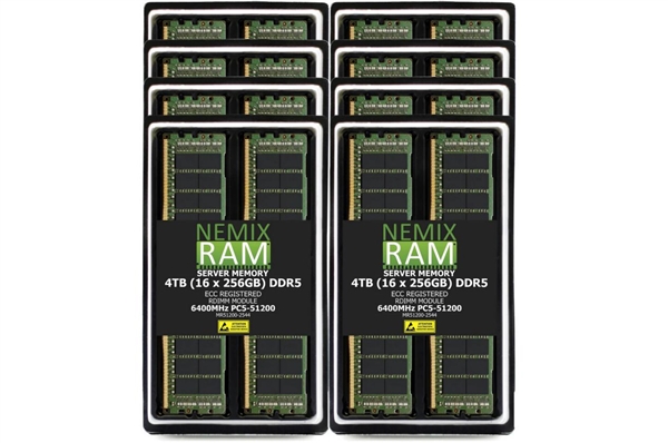 该套装由16条256GB的ECC RDIMM内存组成,总容量达4TB,规格为DDR5-6400,延迟CL52,运行电压1.1V,并且具备完整的ECC纠错支持,这使得其价格远高于普通消费级内存。