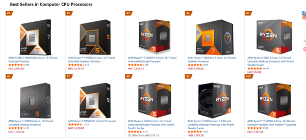 AM4处理器更是占据了4席,除了排名第3的锐龙7 5800XT,还有锐龙5 3600、5500 及5600这些极具性价比的型号。