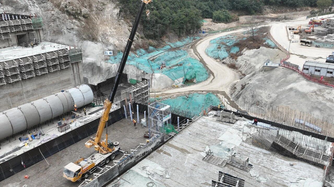 清溪水库当前最高坝段浇筑高度已达54米,大坝混凝土浇筑总量已完成一半,预计2026年12月全面封顶。