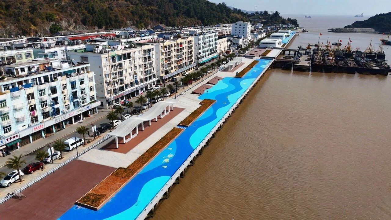 霞关镇位于浙江省最南端,毗邻福建,素有“浙江的天涯海角”美称。霞关海塘全长1.65千米,积极践行“水利+”治理理念,推动安全防护与商业业态、生态文旅功能深度融合,将原有硬质化堤岸转化为生态廊道与滨海公共客厅,形成可漫步、可游览、可休憩的开放空间,激活“以塘兴商、以商兴镇”新动能。在空间布局上,海塘内侧设置水产与体育用品商店、露天茶吧,外立面则打造体育文化展示墙,并配套建设快艇码头等设施,进一步丰富滨海休闲体验。